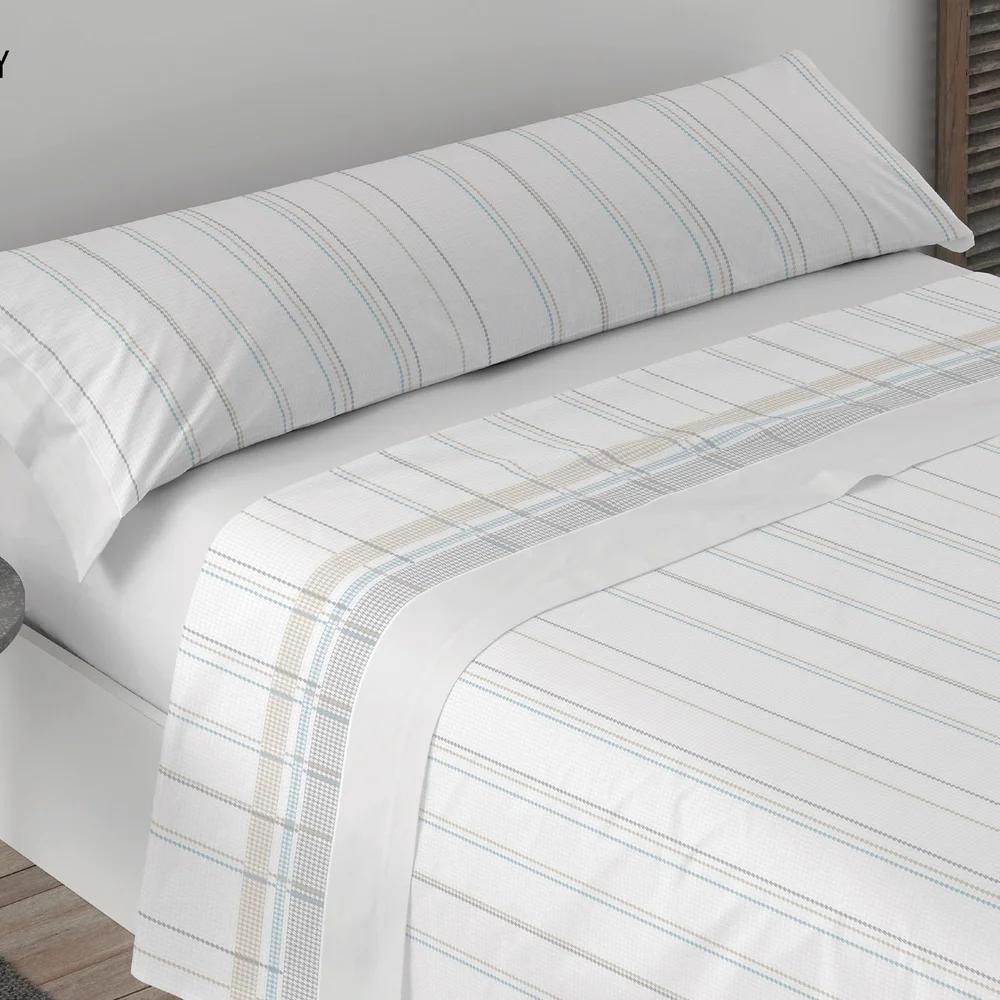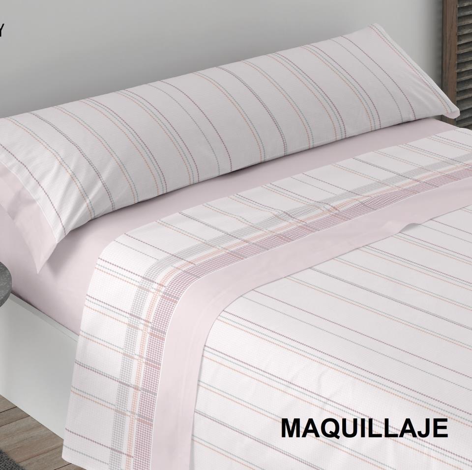 160:Sábana encimera 240 x 270 cm., Sábana bajera 160 x 200 + 30 cm. y 2 Fundas de almohada 45 x 100 cm.