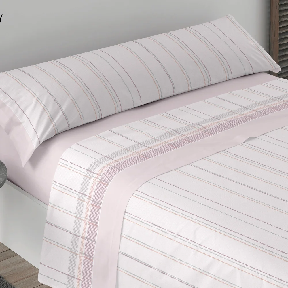 Juego de sábanas 100% algodón con diseño sencillo. Con la suave sensación de frescura que aporta el algodón a cualquier tejido estas sábanas serán el aliado perfecto para combatir las noches de calor.