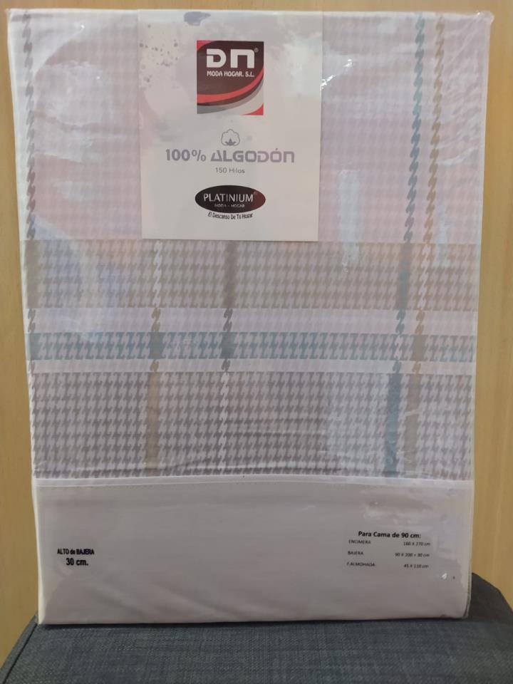 150 2 Almohadas:Sábana encimera 225 x 270 cm., Sábana bajera 150 x 200 + 30 cm. y 2 fundas de almohada 45 x 85 cm.