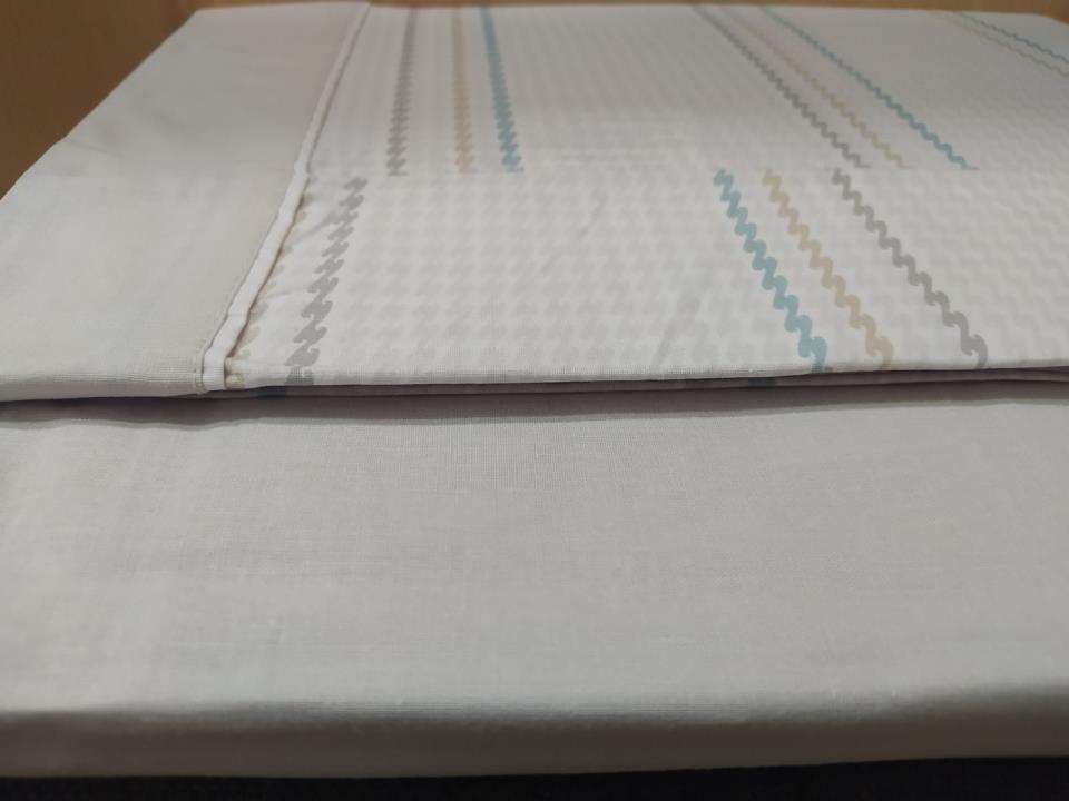 180:Sábana encimera 260 x 270 cm., Sábana bajera 180 x 200 + 30 cm. y 2 Fundas de almohada 45 x 110 cm.