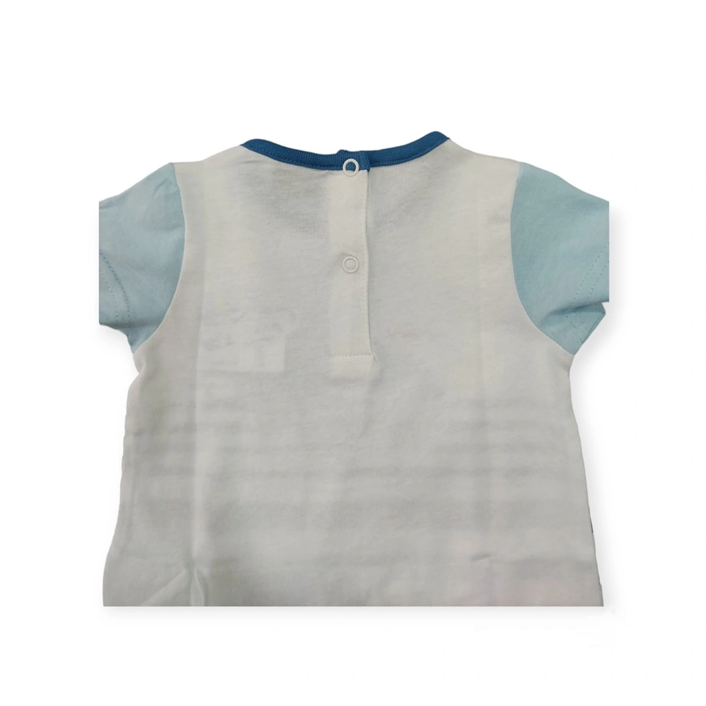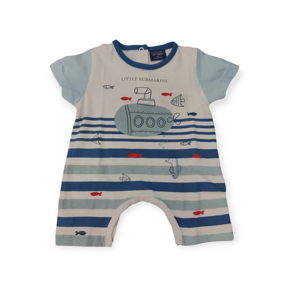Pelele de verano de manga corta para bebé en 100% Algodón, lo que lo hace suave, transpirable y cómodo. Es una prenda ideal para el día a día.