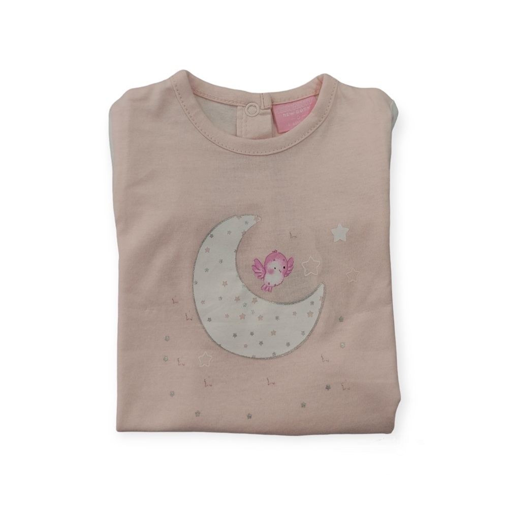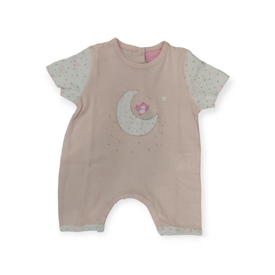 Pelele de verano de manga corta en 100% Algodón. Con diseño clásico y elegante y un estampado sencillo pero alegre en la parte central del pecho.