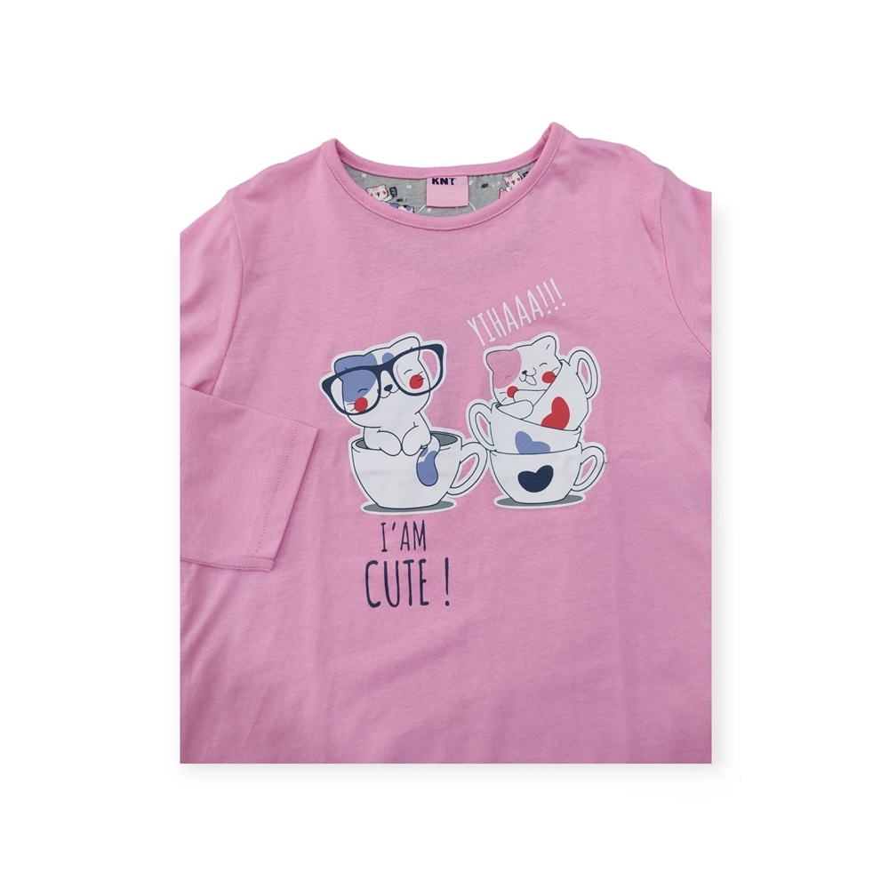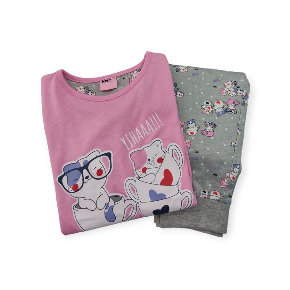 Este adorable pijama de entretiempo para niña está confeccionado en 100% algodón, garantizando suavidad y comodidad para cualquier clima. El conjunto presenta encantadores estampados de gatitos, añadiendo un toque de ternura y diversión.