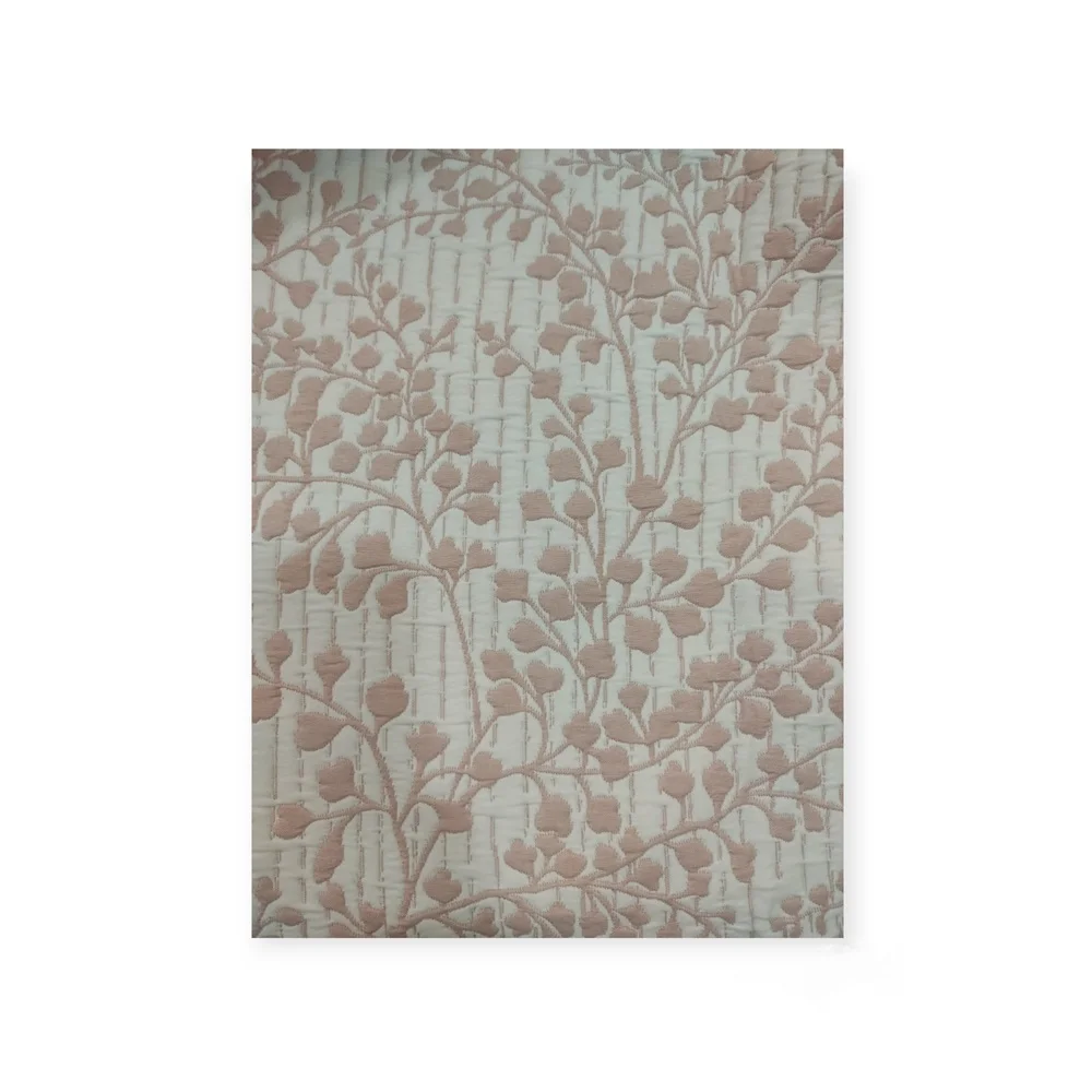 Colcha Jacquard estilo piqué. Es el propio hilo con el que están tejidas el que forma el dibujo de flores. En una cara con fondo a color y flores en color blanco, siendo el reverso al contrario.