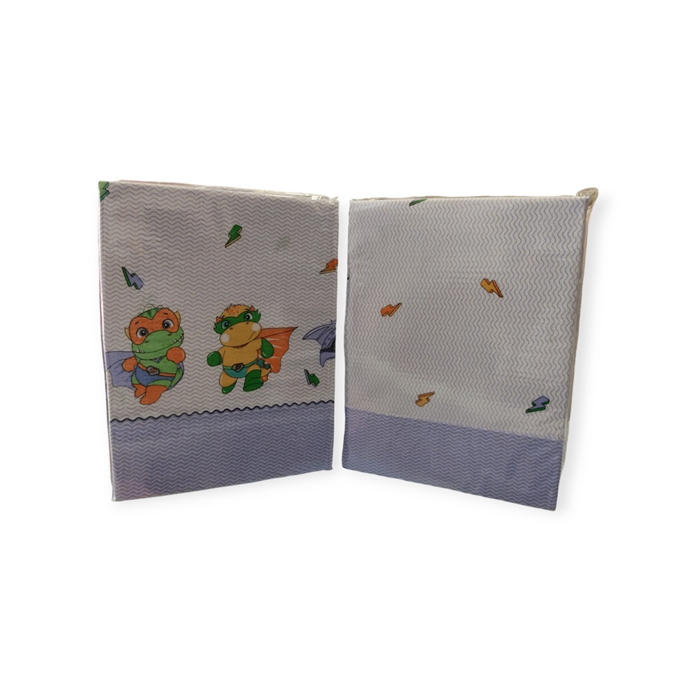 Juego de sábanas de 3 piezas con motivos infantiles.  Tira aplicada sin vivo en almohada. Vivo estampado en sábana encimera.