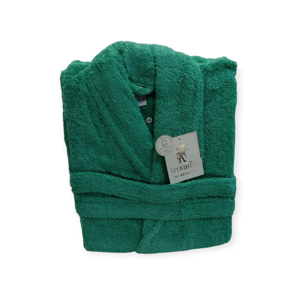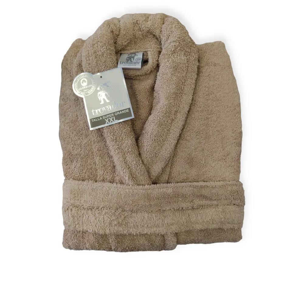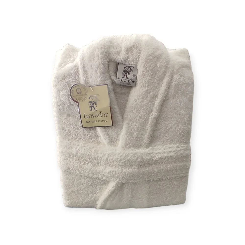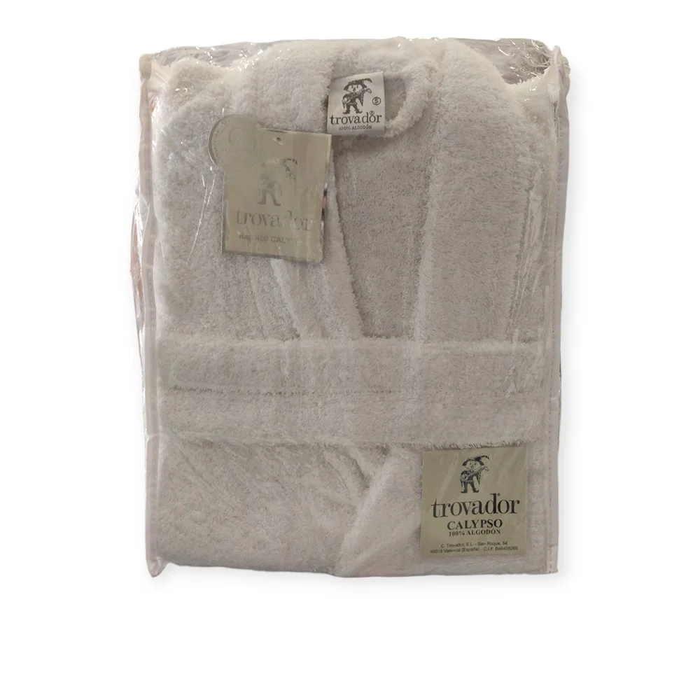 Albornoz 100% algodón de rizo cardado de 400 gramos con tratamiento de Alta absorción. Marca Trovador. Presentación en bolsa.