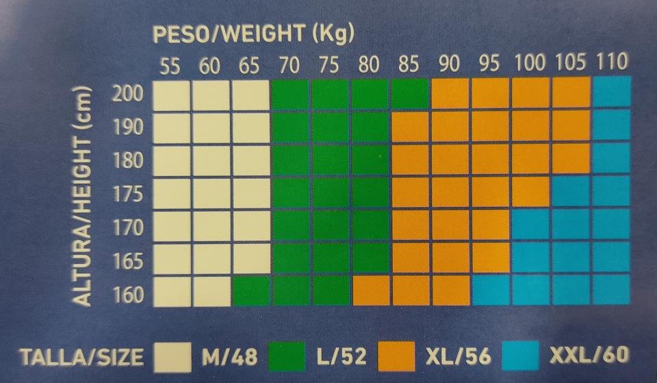 Equivalencia de tallas facilitada por el fabricante en foto.