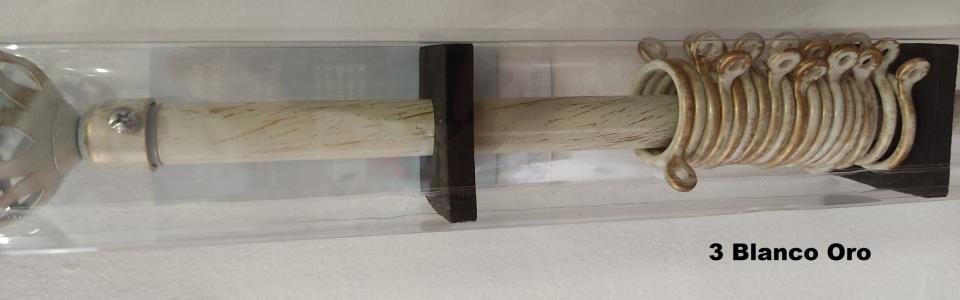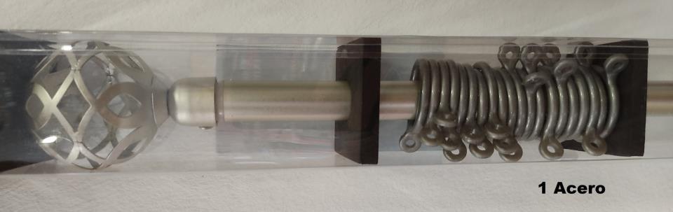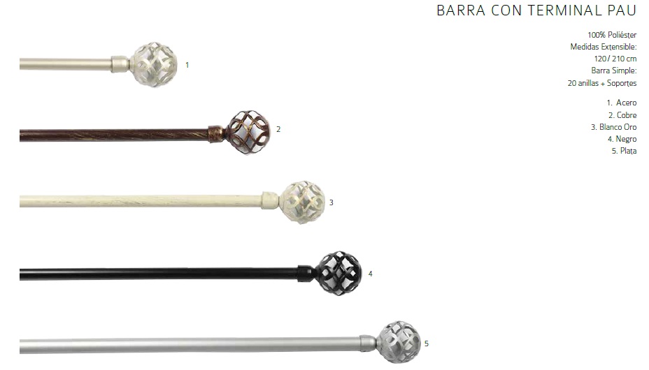 Barra de cortina extensible con terminaciones. Sirve para cortinas con Ollaos, con trabillas o con ganchos. Incluye 20 anillas y soportes.