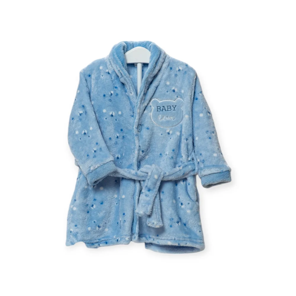 Bata para bebé de coralina. Tejido muy suave, ligero y cálido. Cierre con botones. Con dos bolsillos laterales.
