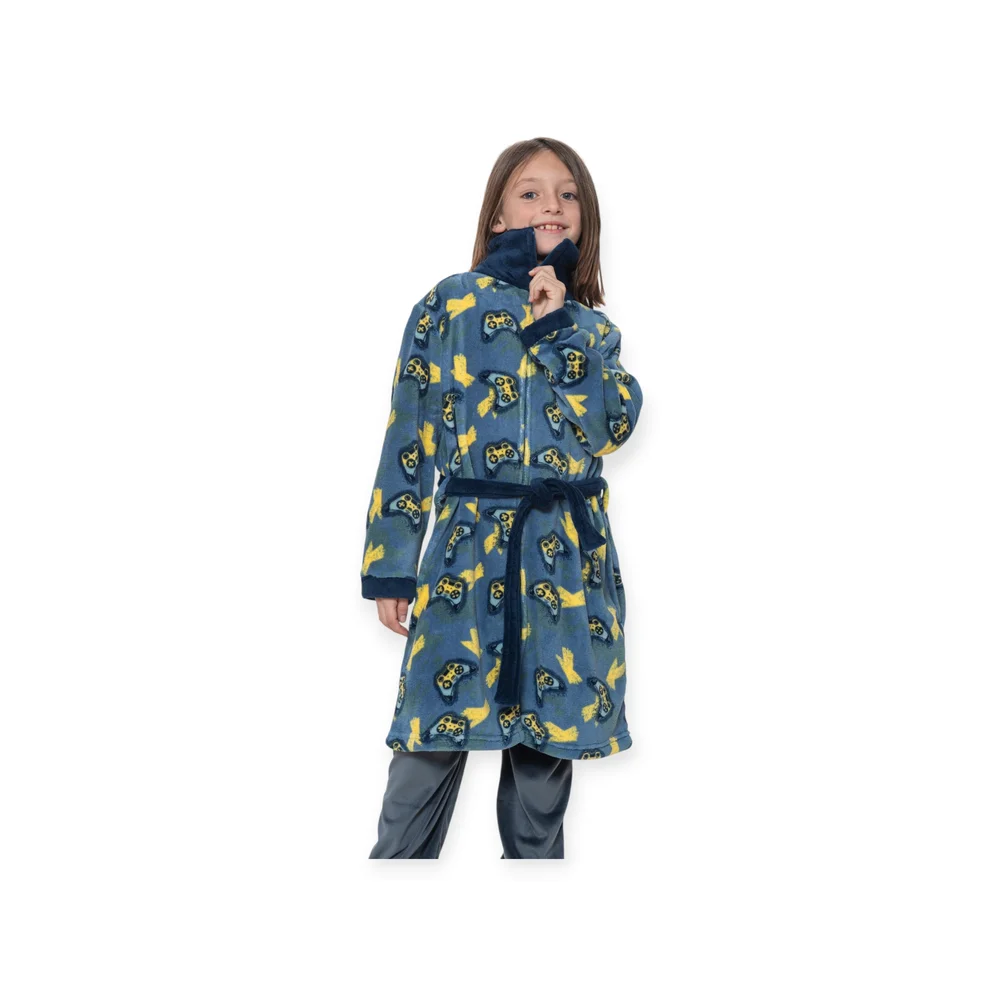 Bata para niño de coralina con cremallera. Tejido muy suave y ligero. Con bolsillos laterales.