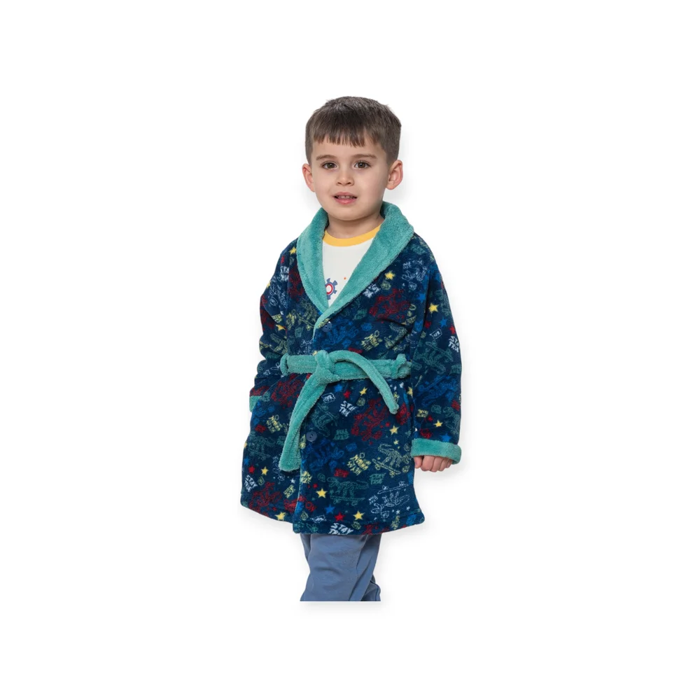 Bata para niño en tallas infantiles. De nacarina, un género muy ligero, suave y cálido.