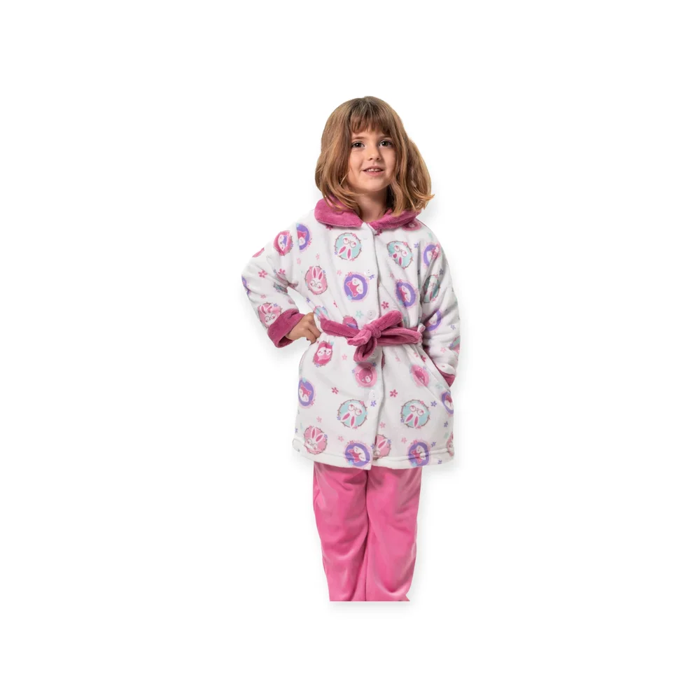 Bata para niña en tallas infantiles. De nacarina, un género muy ligero, suave y cálido. Ideal para los meses más fríos.