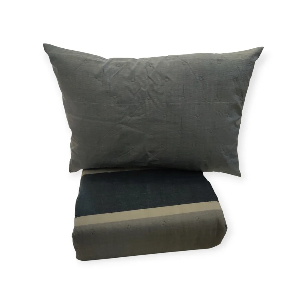 Termo sellado distanciado en forma de círculos, lo que le confiere un aspecto acolchado y mejora la caída de la colcha en su colocación.