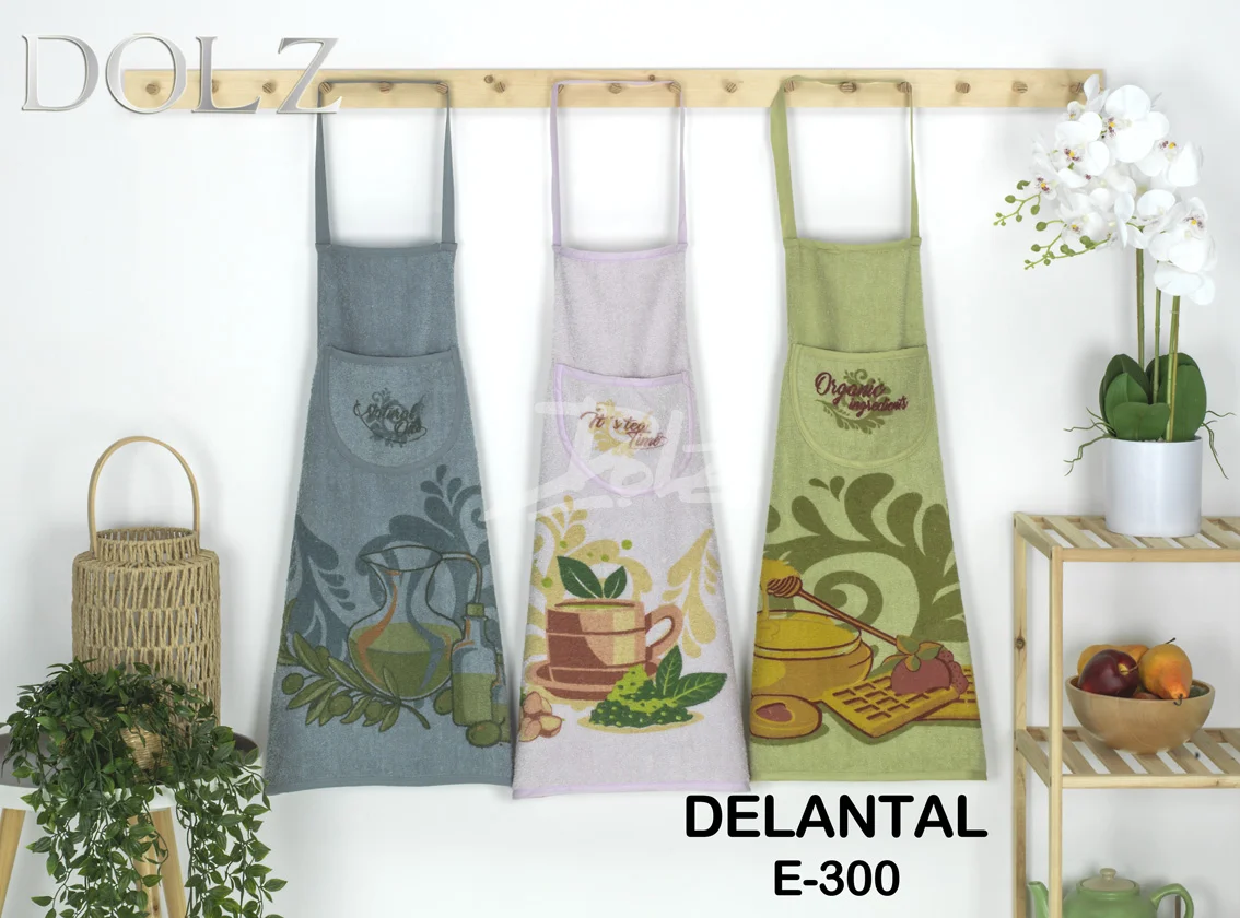 Paño de cocina 100% algodón de rizo con fondo de color liso y estampado en la parte central.