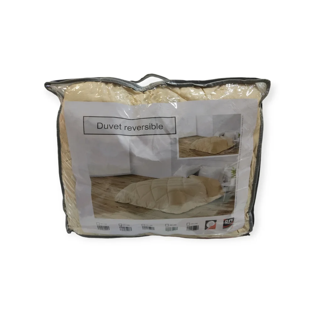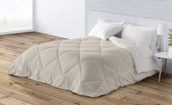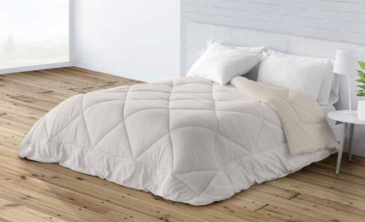 Edredón reversible con un color liso distinto en cada cara. Con relleno de 200 gramos, es una prenda muy ligera de peso pero con alto poder de abrigo.