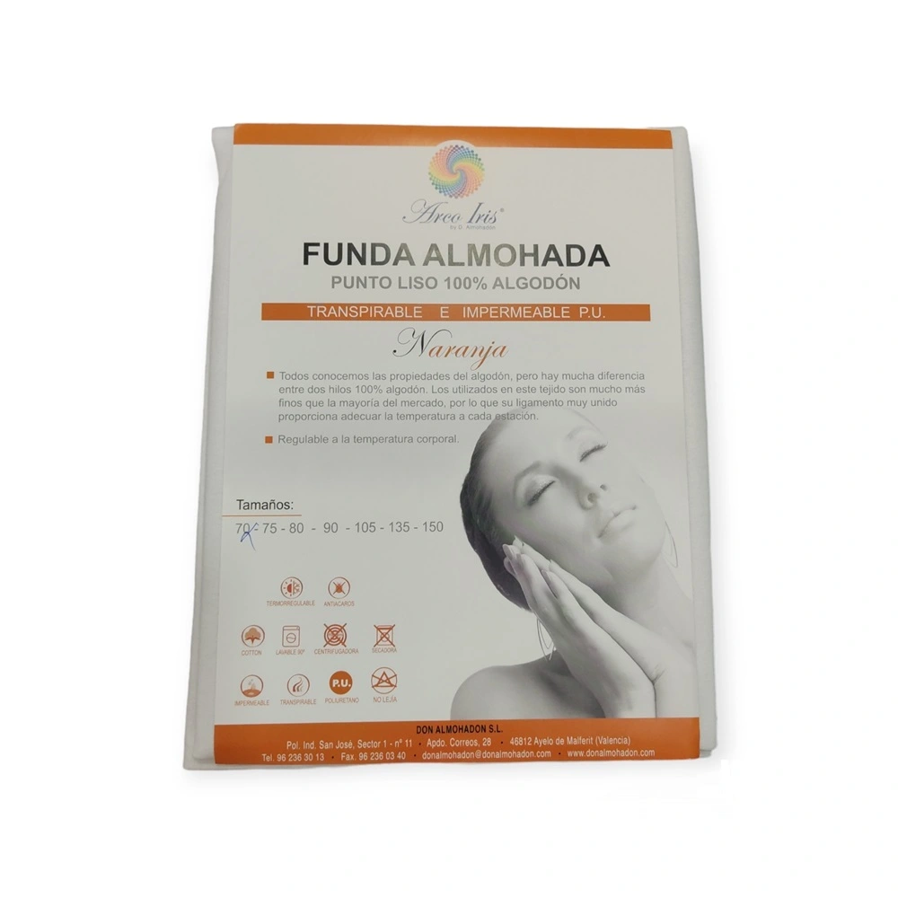 Funda de almohada Impermeable y Transpirable. De punto liso 100% algodón con Poliuretano. Proporciona la seguridad de tener la almohada protegida con un tejido de 100% algodón en punto liso termo regulable. Ancho de 42 cm. y cierre con cremallera.