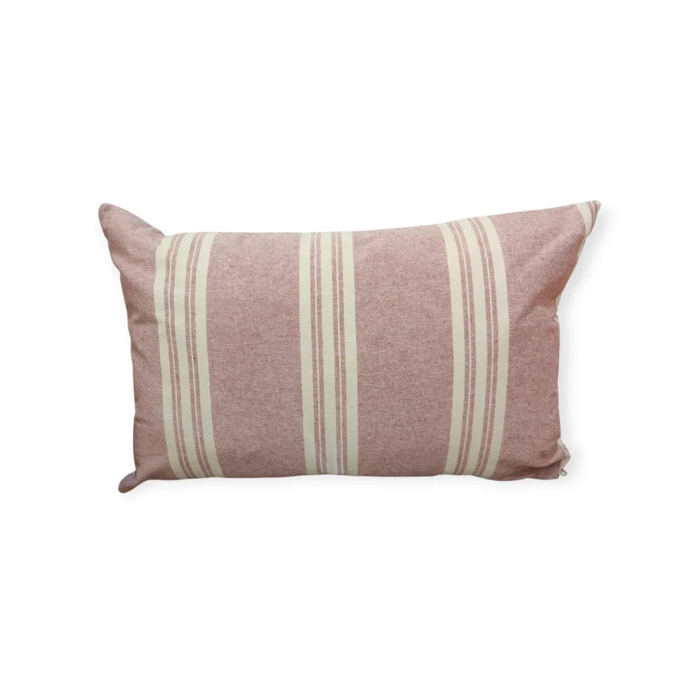 Funda de cojín Sako de 40 x 60 cm. con franjas verticales en tono beige sobre fondo a color. En colores neutros fáciles de combinar con otras fundas.