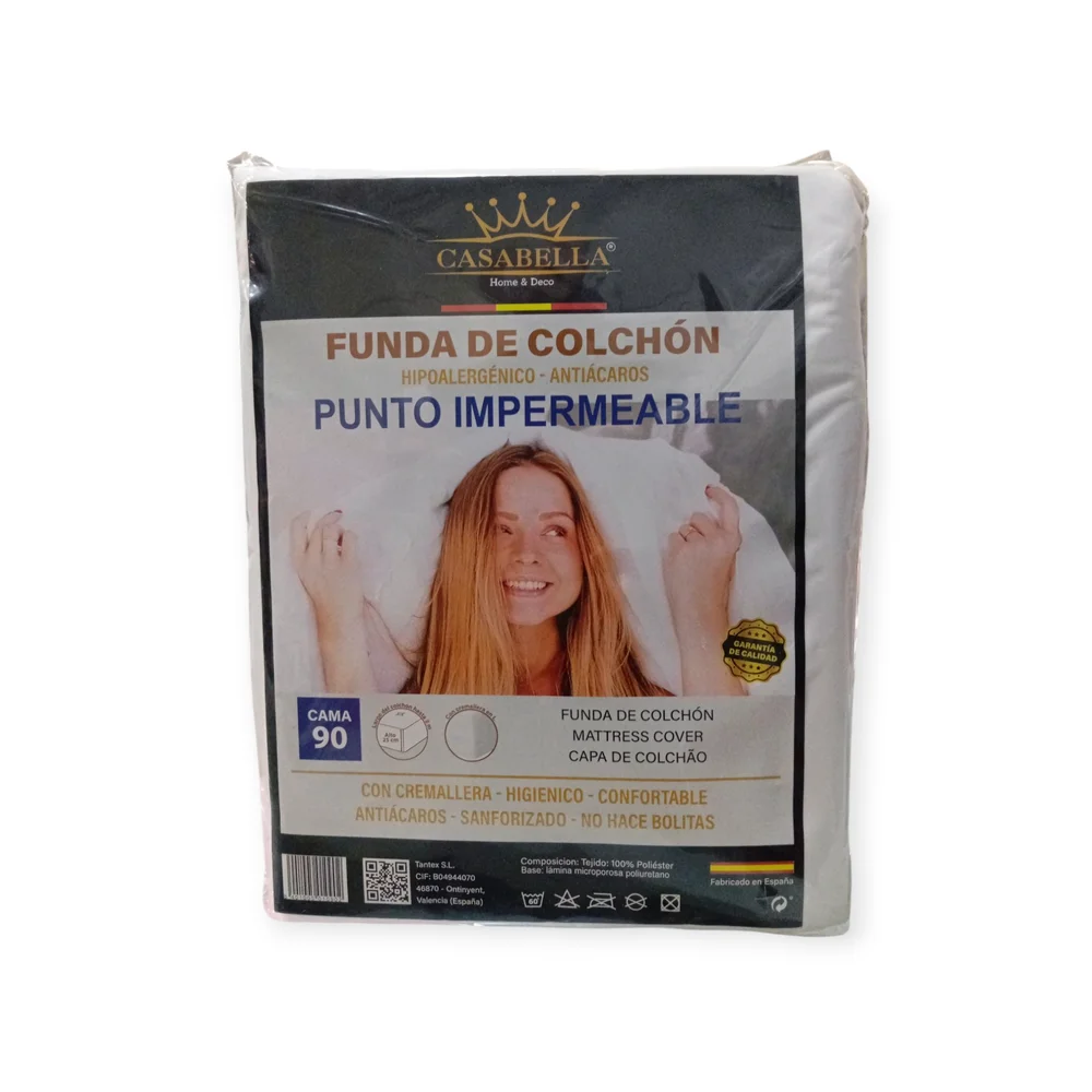 Funda colchón con impermeable en tejido de punto, hipoalergénico y con tratamiento antiácaros. Con cremallera en forma de L para una colocación más cómoda. Tejido de punto elástico sanforizado para hacerlo más brillante. Muy suave al tacto.