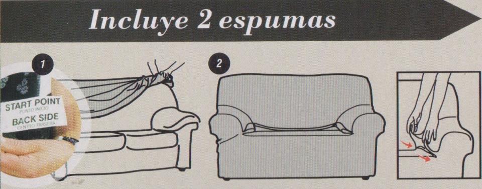 Fundas de sofá elástica que se adaptan a distintas medidas del sofá. Con línea vertical lo que le confiere una gran adaptabilidad a todas las formas del sofá. Ideales tanto para proteger un sofá nuevo o para darle una segunda vida a un sofá antiguo. Muy fáciles de poner y quitar. Encuentra la etiqueta PUNTO INICIO CENTRO TRASERA. Sistema que permite colocar las fundas sin levantar los cojines, sujeción con dos barras de espuma. Elástico perimetral en la parte inferior para un mejor acople en el sofá.
