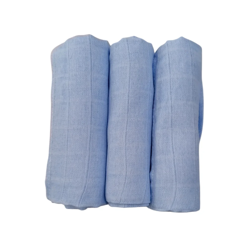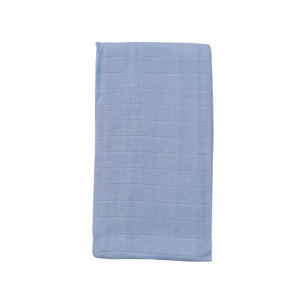 Gasa para bebé en color liso azul. Se recomienda un primer lavado para que la prenda adquiera su tamaño y suavidad definitivos.