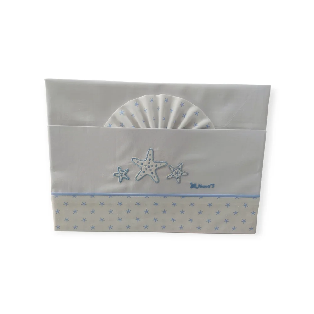 Juego de sábanas para coche en tejido 100% Algodón. Fabricados con los más estrictos controles de calidad para conseguir el mejor tejido posible para nuestros bebés. En la sábana encimera lleva el dibujo bordado en la vuelta de la sábana.