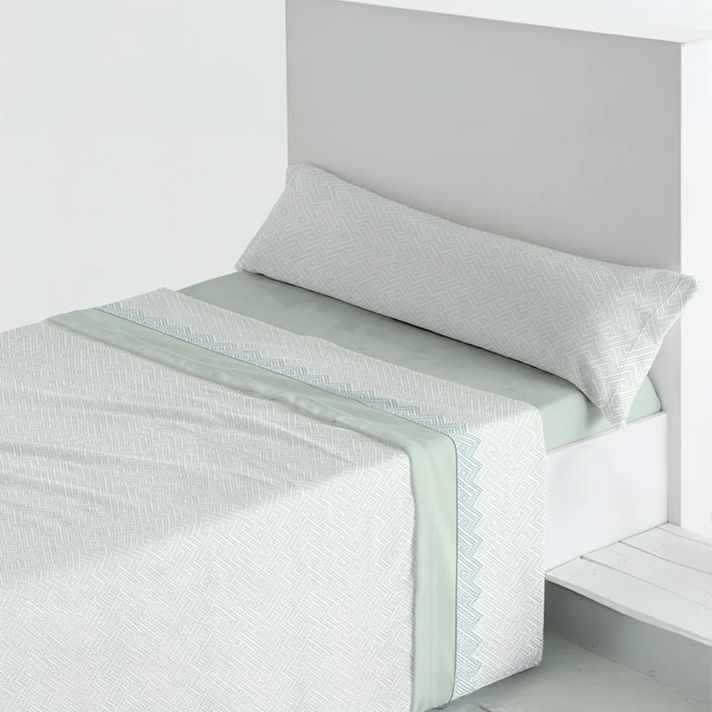 105: Sábana Encimera 180 x 270 cm., Sábana Bajera 105 x 200 + 30 cm. y Funda de Almohada 45 x 125 cm.
