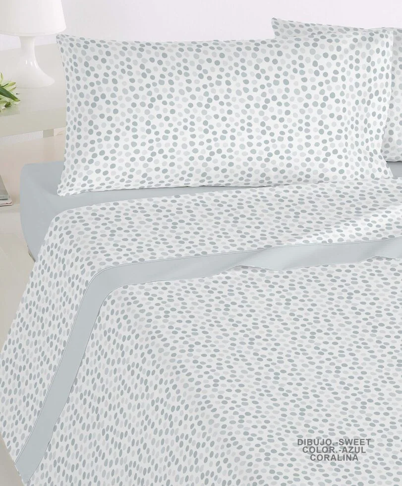 200: Sábana encimera 275 x 270 cm., sábana bajera 200 x 190/200 + 28 cm. y 2 fundas de almohadas 45 x 125 cm.