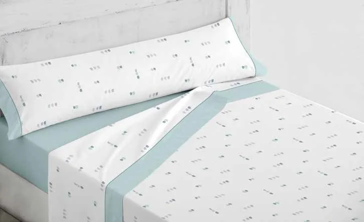 Juego de sábanas Emma aqua. Encimera y funda de almohada con estampado. Para dar un toque juvenil a cualquier habitación.