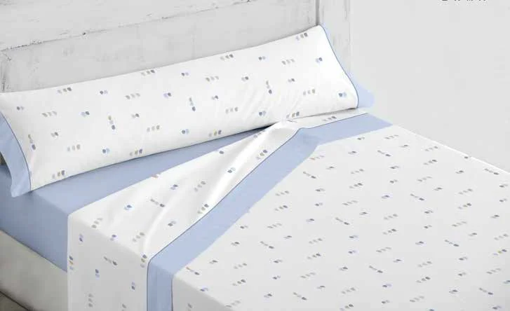 Juego de sábanas de 3 ó 4 piezas con encimera y funda(s) de almohada con estampado. Tejido de 144 hilos de alta calidad. Muy suave y resistente a las lavadas. Con bajera apta para colchones de hasta 30 centímetros.
