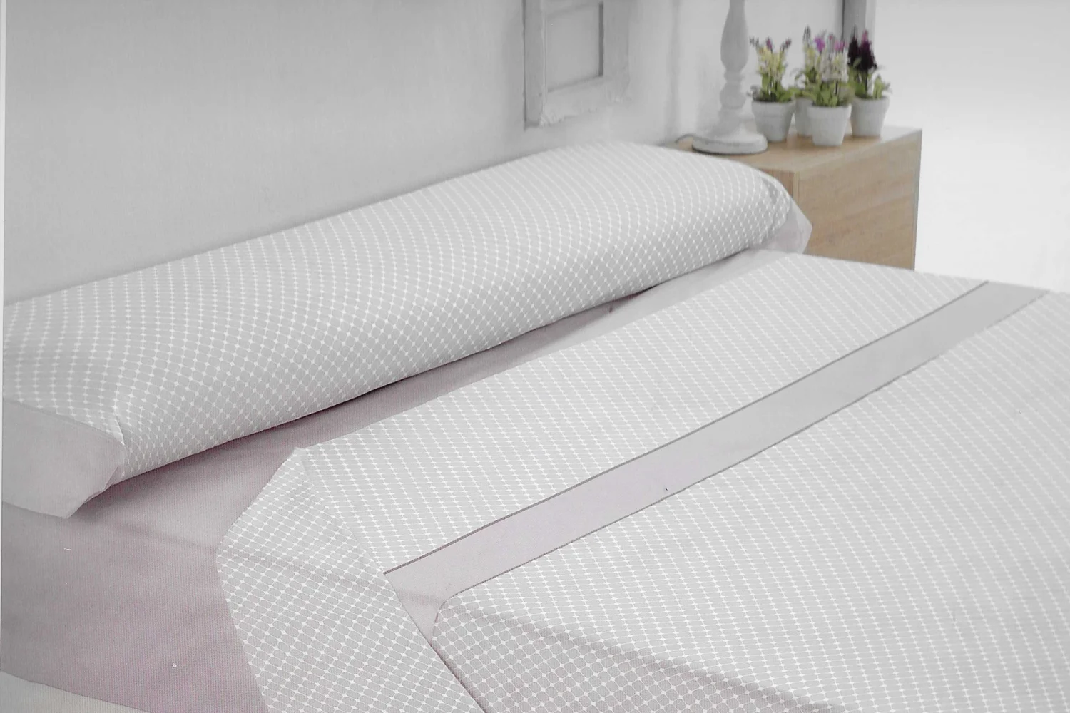 90: Sábana Encimera: 160 x 270 cm., Sábana Bajera:  90 x 200 + 30 cm. y  Funda de Almohada: 45 x 110 cm.