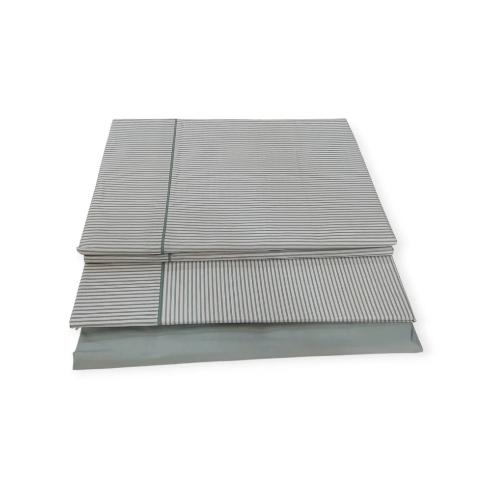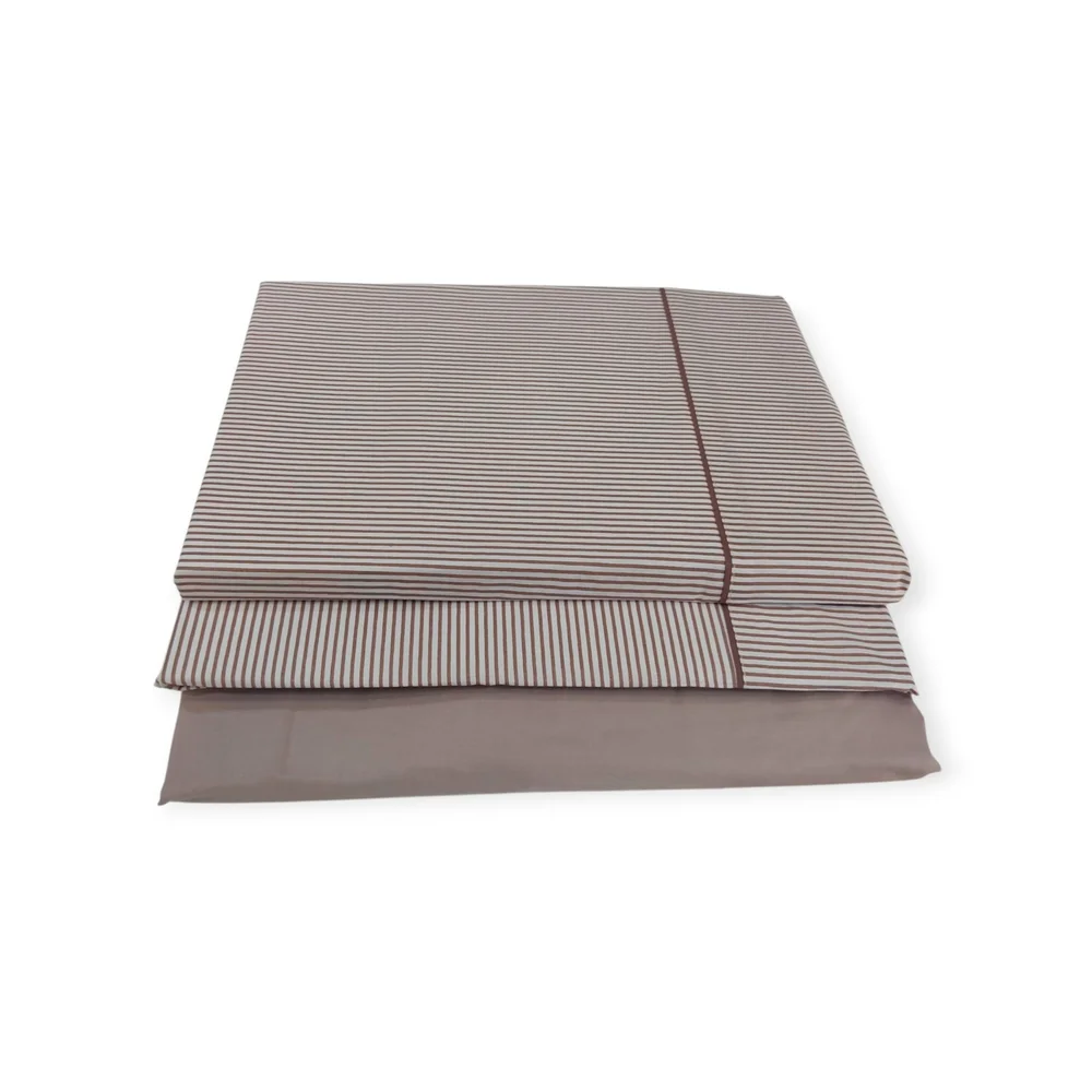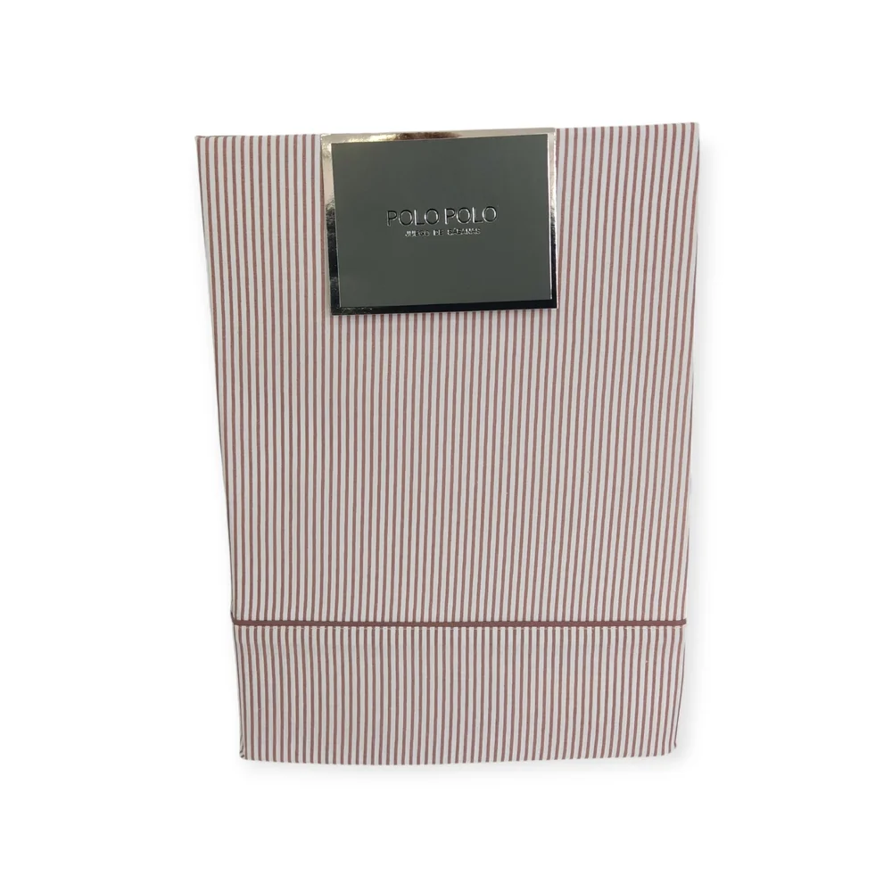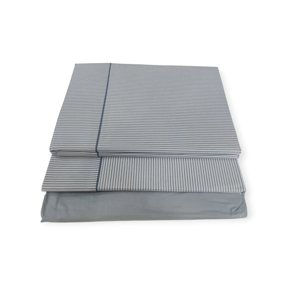 Juego de sábanas de 3 o 4 piezas. Tejido de 144 hilos, suave y muy resistente a las lavadas. Sábana bajera en color liso y goma en los extremos. Encimera y almohada de fondo blanco con raya diplomática.