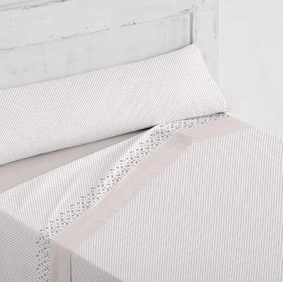 160: Sábana encimera 240×270 cm., Sábana bajera 160×200+30 cm. y 2 fundas de almohada 45×85 cm.