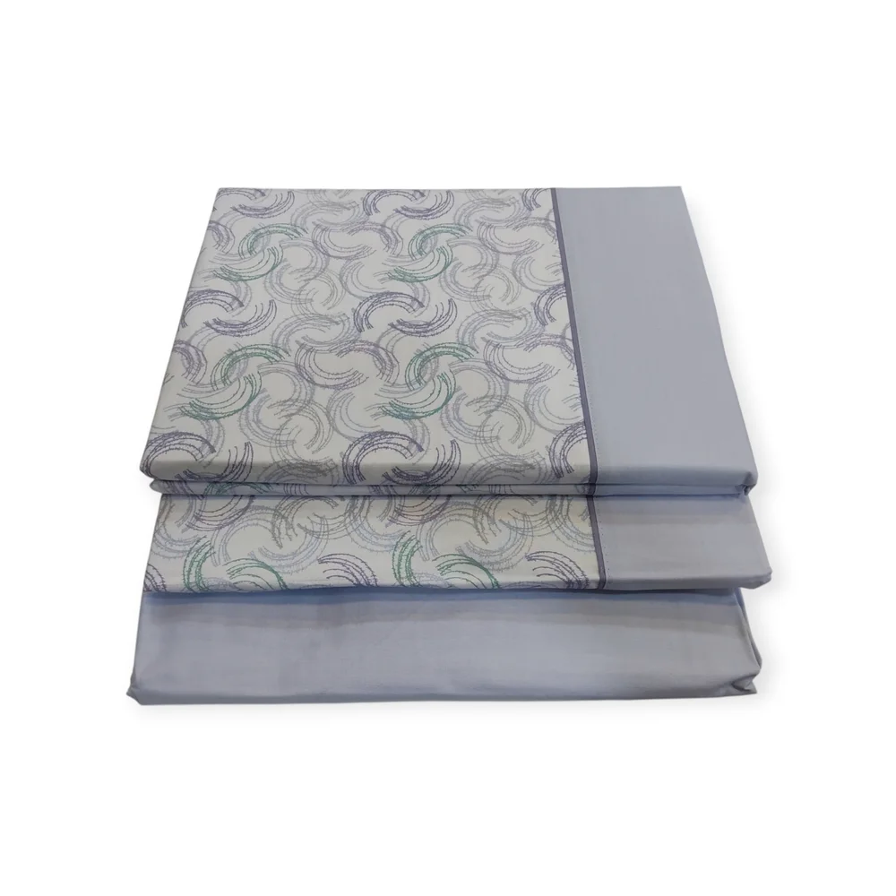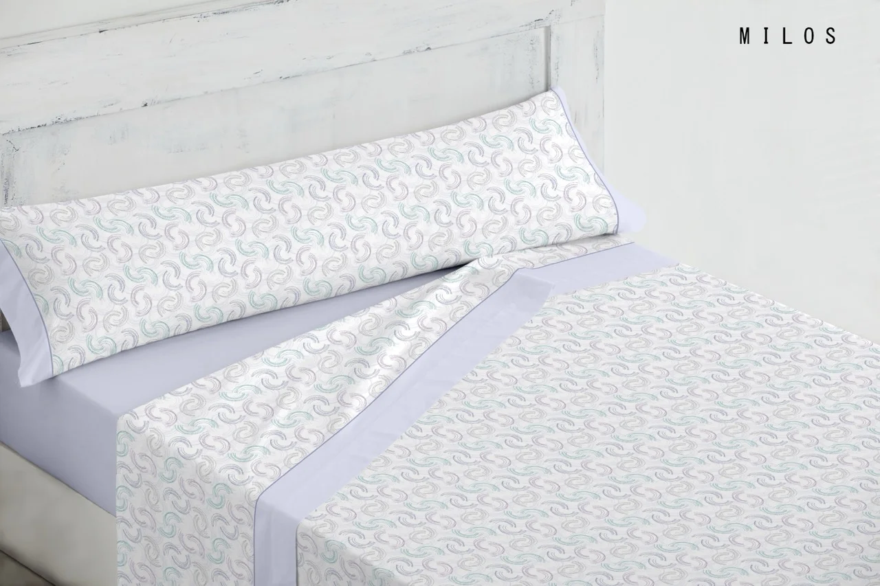 Juego de sábanas Milos azul. Encimera y funda de almohada con estampado. Para dar un toque de elegancia a cualquier habitación.
