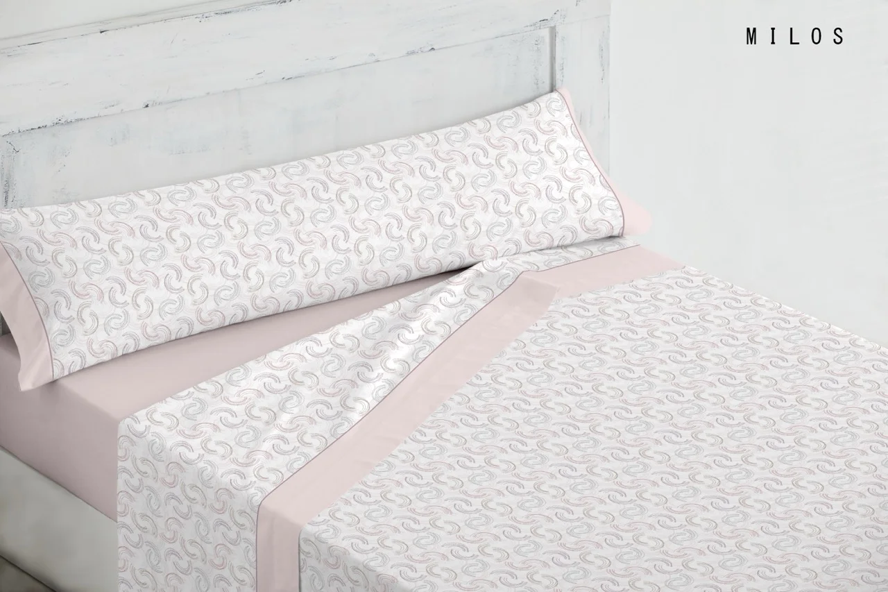Juego de sábanas Milos nude. Encimera y funda de almohada con estampado. Para dar un toque de elegancia a cualquier habitación.