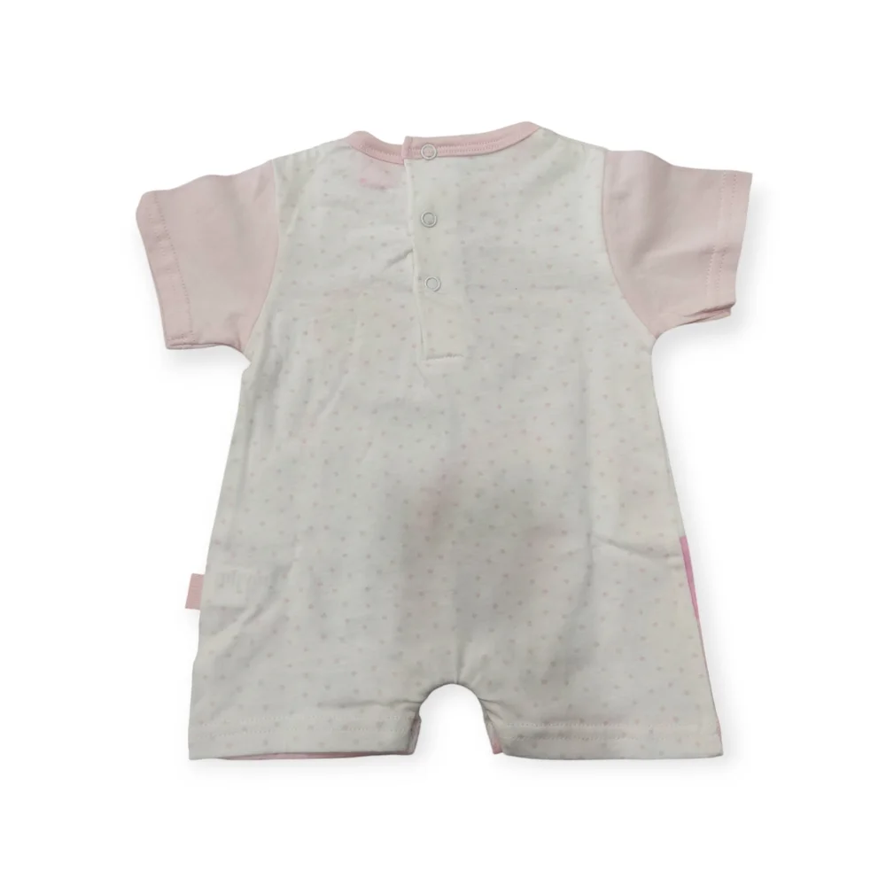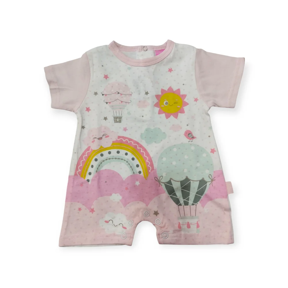 Pelele de verano de manga corta para bebé en 100% Algodón, lo que lo hace suave, transpirable y cómodo. Con estampado colorido en la parte delantera.
