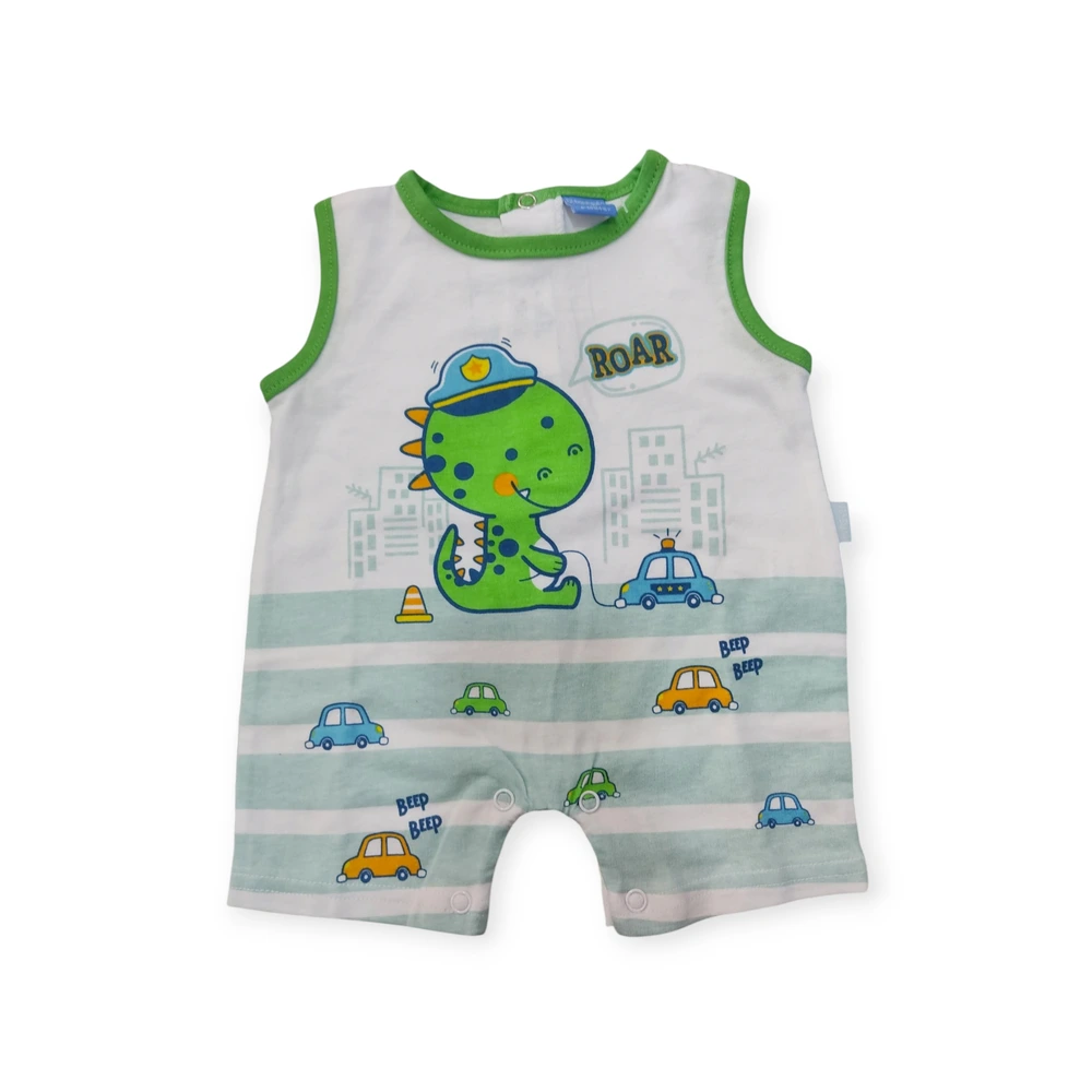 Pelele de verano sin mangas para bebé en 100% Algodón, lo que lo hace suave, transpirable y cómodo.