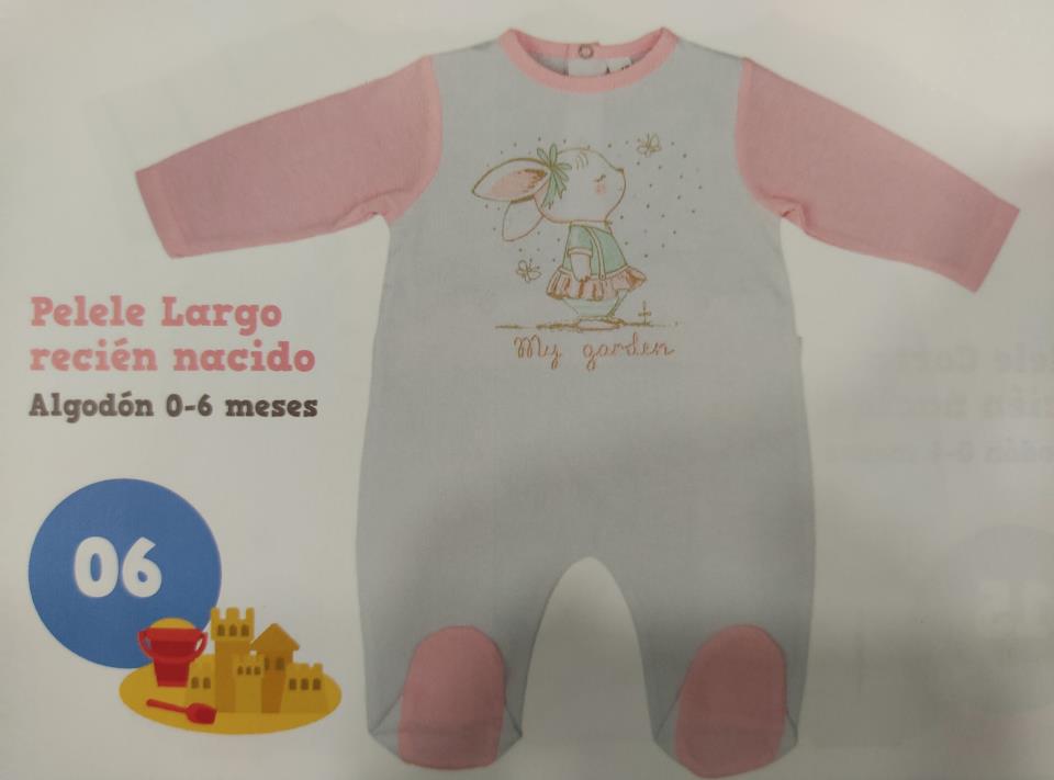 Pelele para recién nacido. Tallas disponibles de 0 a 6 meses. Tejido muy suave. Pelele abierto por la parte de la espalda.