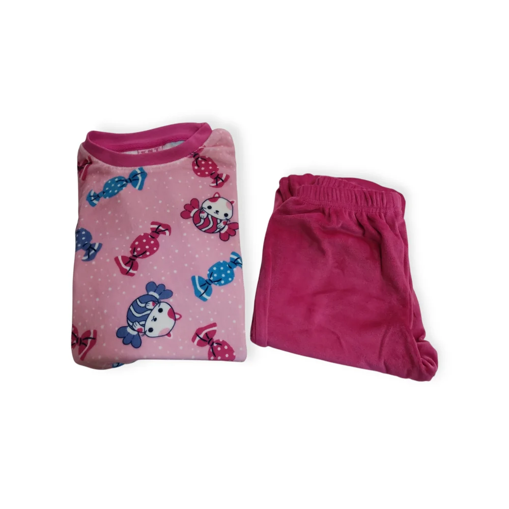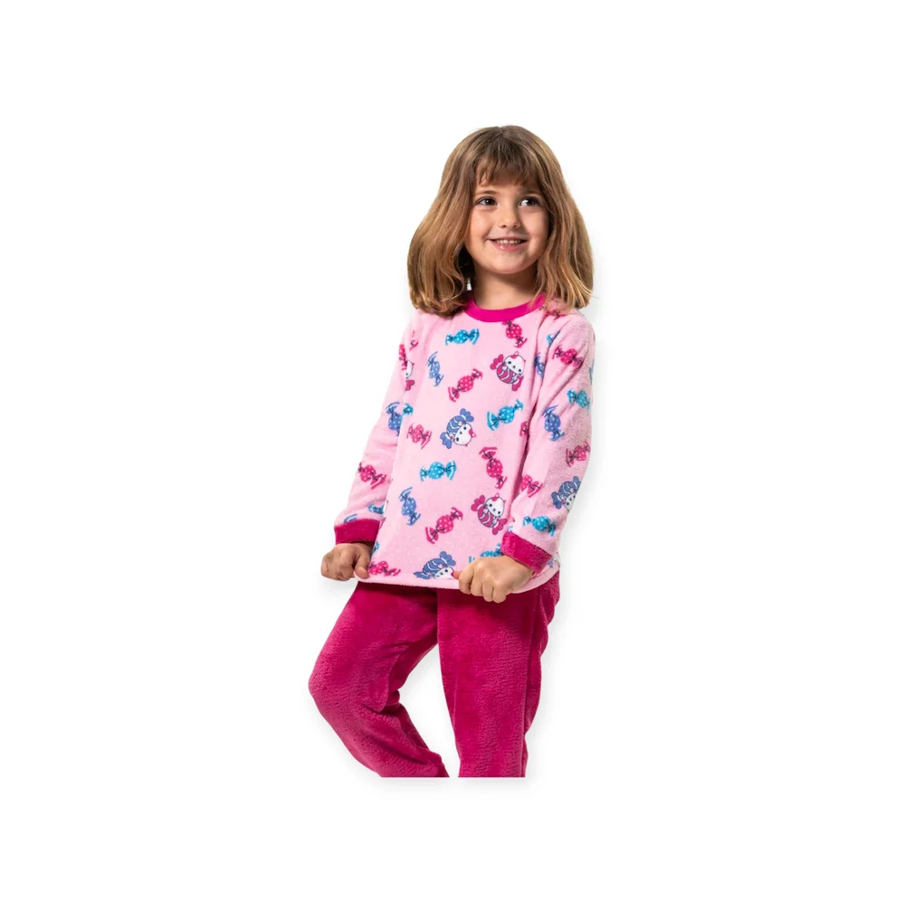 Pijama para niña de Spandex. Tejido con tacto de terciopelo en el exterior y afelpado interior. Muy suave, cálido y elástico.