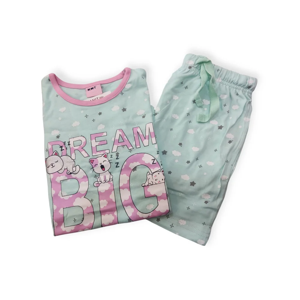 Este divertido pijama de verano para niña está hecho de 100% algodón, proporcionando una sensación suave y fresca ideal para las noches cálidas.