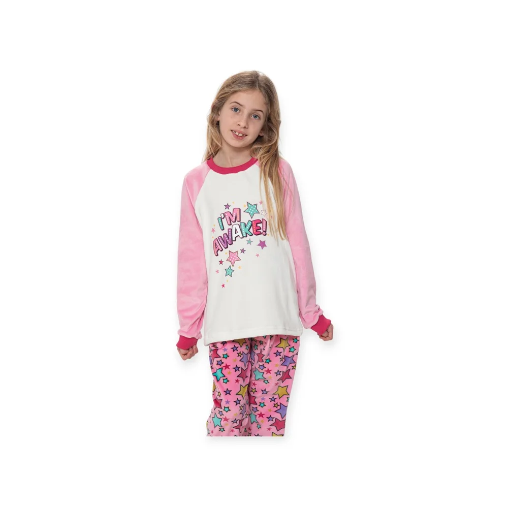 Pijama para niña de Spandex. Tejido con tacto de terciopelo en el exterior y afelpado interior. Muy suave, cálido y elástico.