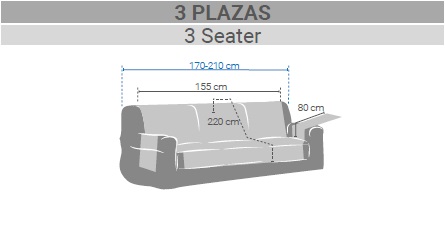 Para saber qué medida se adapta mejor al modelo de tu sofá habrá que tomar la medida que hay desde el interior de un brazo hasta el interior del brazo del otro extremo, o lo que es lo mismo, la medida del asiento.