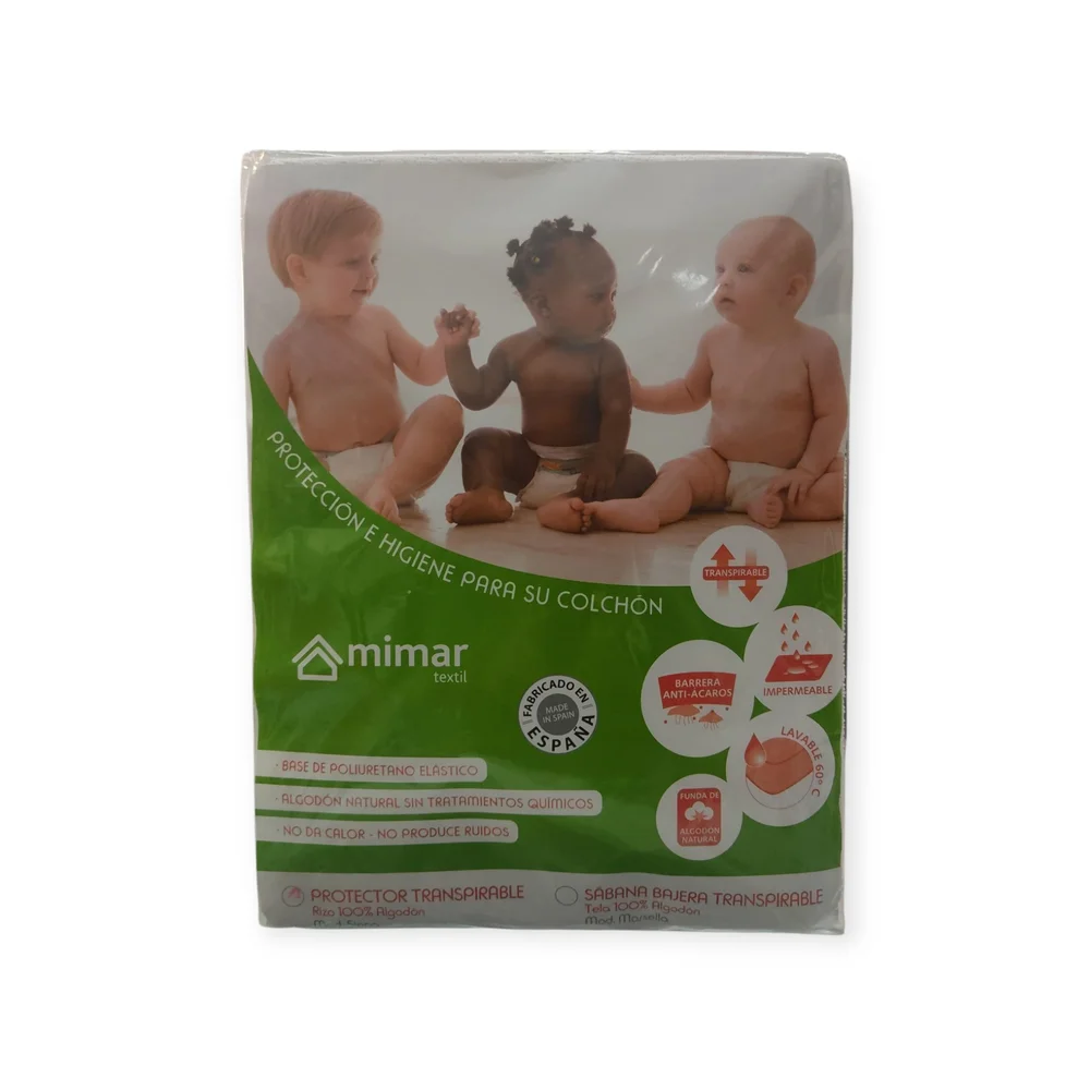 Protector Impermeable de Mini Cuna. Rizo 100% algodón y una capa de poliuretano en el interior. Transpirable. Tejido muy fino y agradable al tacto.