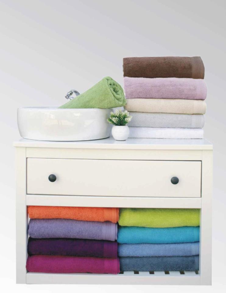 Toalla de rizo 100% algodón de 500 gramos con rizo americano. Una de las toallas con mejor poder de absorción y mayor durabilidad del tejido y colores.